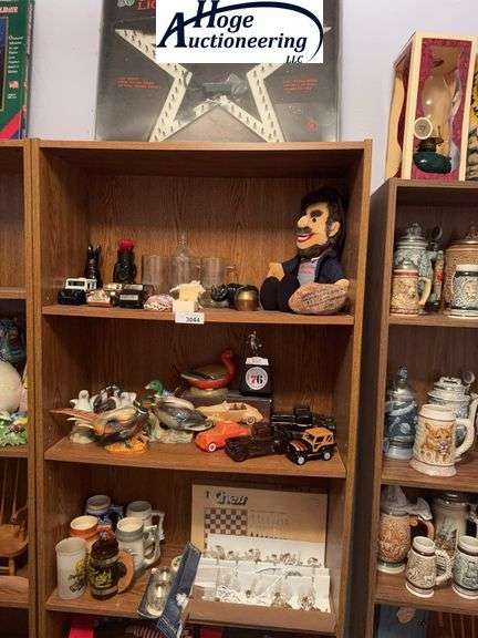 LOT 3044 - Wood bookshelf & contents 23" Star light, mugs, Christmas decor