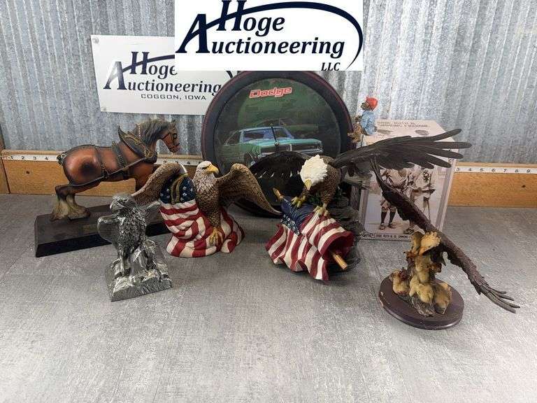 LOT 3121 - EAGLE FIGURINES, DODGE CHARGER CLOCK, BABE RUTH/ AL SIMMONS FIGURINE