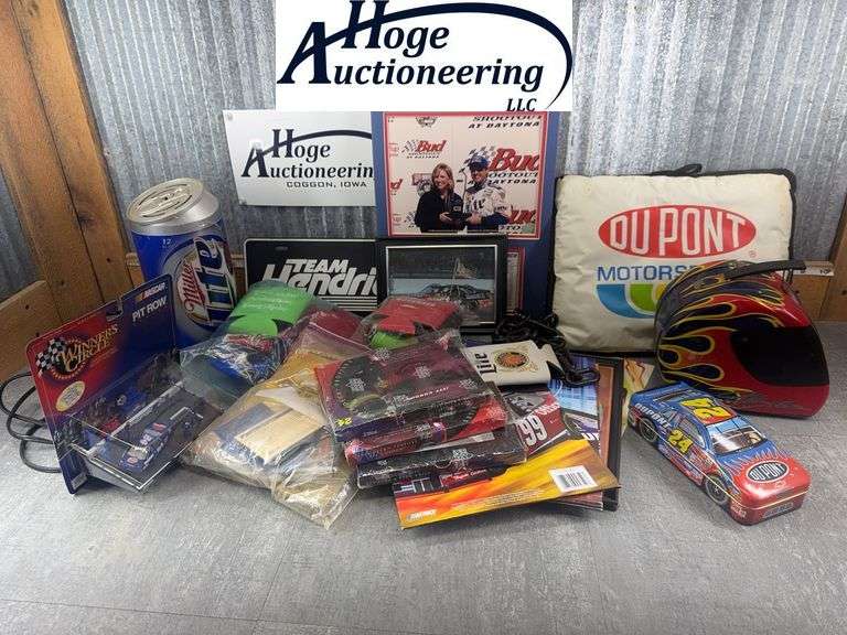 LOT 3143 - BOX MISC NASCAR, BUDWEISER--KOOZIES, FOLDERS, OVERSIZED TRADING CARDS, TINS, ETC