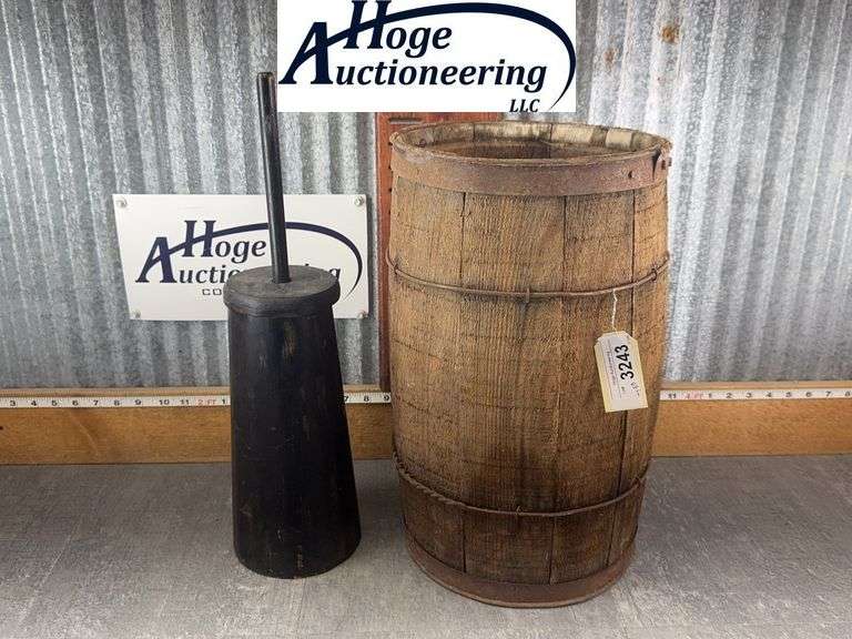 LOT 3243 - NAIL KEG, DECORATIVE BUTTER CHURN