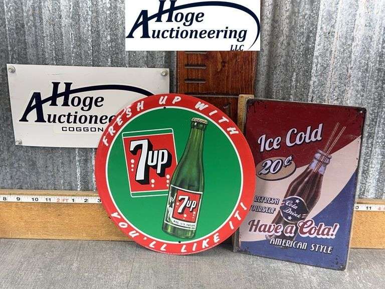 LOT 3240 - COLA TIN SIGN 8X12, 7UP TIN SIGN 12"