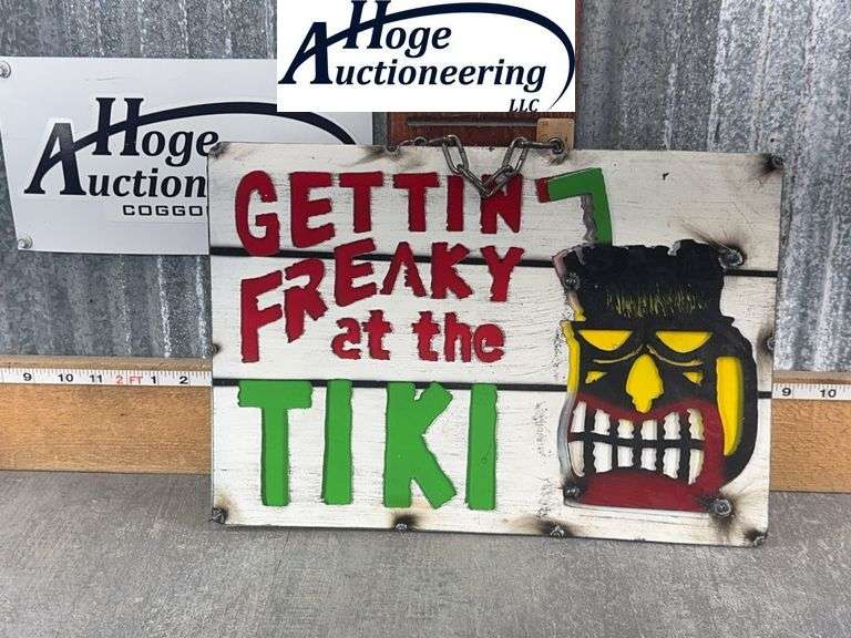 LOT 3301 - GETTIN' FREAKY AT THE TIKI METAL SIGN, 16.5W X 11.5T