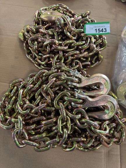 LOT 1543 - 3/8" x 20 ft log chains, Money x 2, tax applies