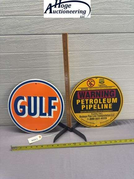 LOT 4083 - X2 - Petroleum Pipeline & Gulf round signs - tin