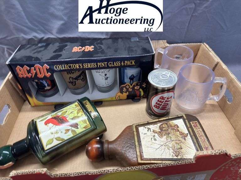 LOT 4814 - ACDC COLLECTORS SERIES PINT GLASS - 4PACK, 2 BEAM/BEAM'S CHOICE DECANTERS, 2 WINSTONCUPS, BEER BUTS