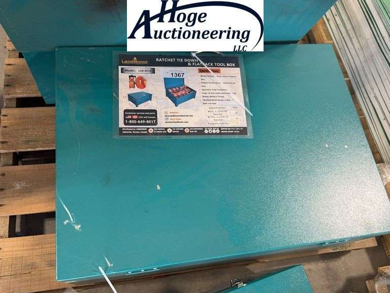 LOT 1367 - MONEY X 25--RATCHET TIE DOWN SET AND FLAT PACK TOOL BOX, TAX APPLIES