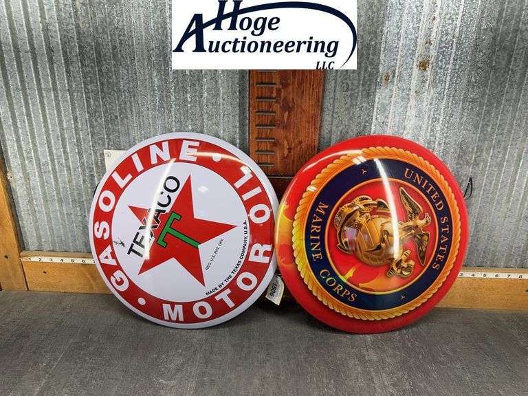 LOT 1506 - MARINES, TEXACO TIN SIGNS, 15.5" ROUND