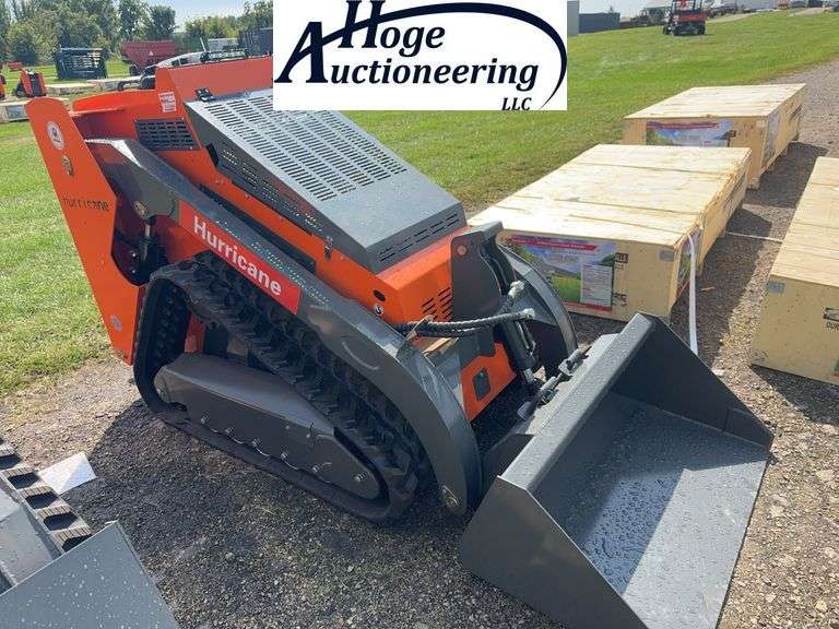 LOT 1089 - HURRICANE MINI SKID STEER W/ TRACKS, GAS, 39.5" BUCKET, HAS DAMAGE TO STEERING HANDLES, TAX APPLIES