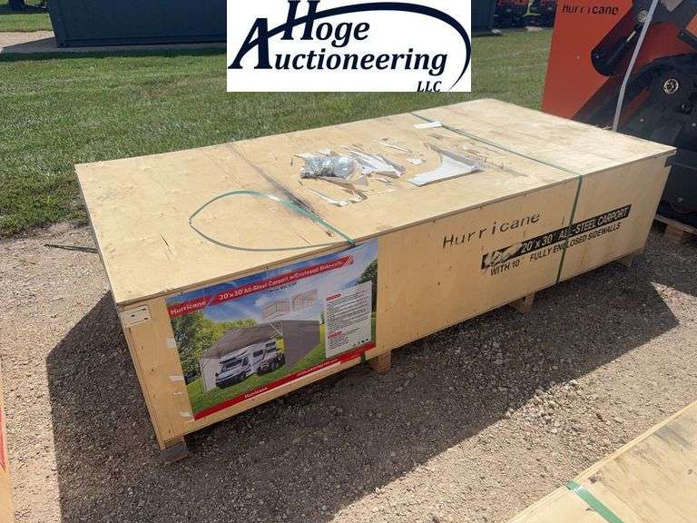 LOT 1108A - HURRICANE 20X30X10T STEEL CARPORT W/ ENCLOSED SIDES, TAX APPLIES