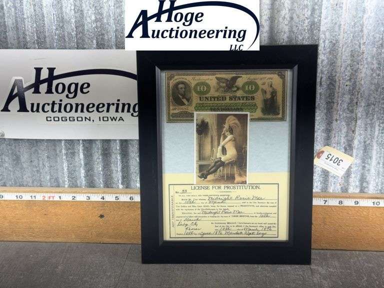 Lot 3015:FRAMED LICENSE DISPLAY, 11W X 14T